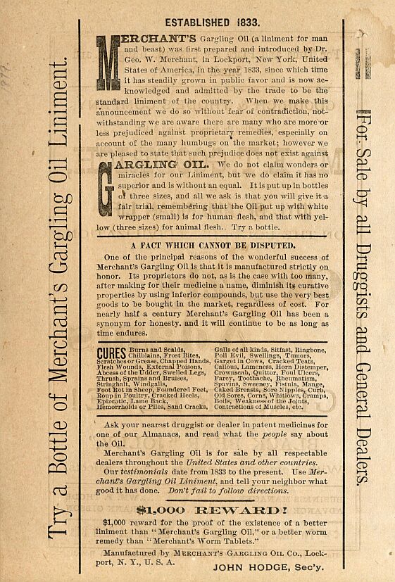 Page three, a description of the play. Note that Merchant's Gargling Oil is mentioned on this and every page.