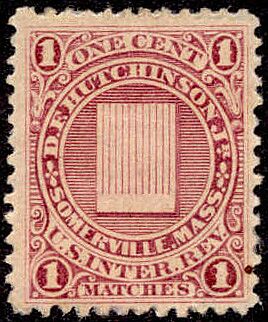 Hutchinson's match stamp was a production of the Bureau of Engraving and Printing late in the tax period. They were first issued October 24, 1881 and ran through the remaining years of the tax to January 31, 1883, presumably giving them enough to use until July 1 of that year. 2,100,000 were printed by the Bureau on watermarked paper.