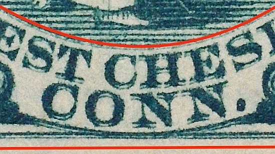 A double transfer is known on the final Ives & Judd stamps. It involves the letters at bottom center and the entire bottom frame line. It is easily noticeable in both letters N in the abbreviation CONN.and the bottom frame line.