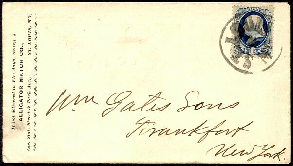 There was never an Alligator Match Company as such in Saint Louis. The Cupples woodenware company ordered matches with harder heads from Mansfield for Southern sales under the brand name of Alligator. The stamps were prepared for that purpose.