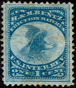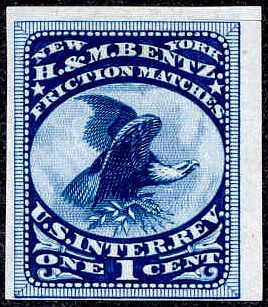 Henry and Martin Bentz were owners of a match company located in New York City. 7,454,400 of their stamps were issued from November, 1864 to July 23, 1868, all on old paper.