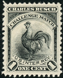 Charles Busch was a seller of matches and "fancy goods" in New York during the tax period. The matches may have been manufactured at the Seward Match Manufacturing Company in Trenton, New Jersey. The stamps were printed by the American Bank Note Company, and were issued from May of 1880 to late January, 1881. 4,166,000 were issued on watermarked paper.
