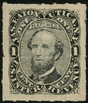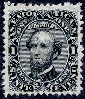 The Eaton company began in Utica, New York around 1865 and existed under various names until it was closed in 1882. Stamps were first issued in May of 1866 and last in February 1883, which does not seem correct if the firm closed in 1882. 20,864,970 were issued on old paper, 36,203,136 on silk paper, and 45,089,847 on pink and watermarked papers. A number of watermarked copies were rouletted.
