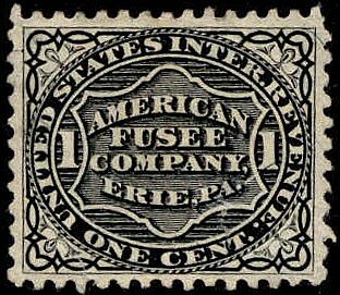 The American Fusee company of Erie, Pennsylvania started in business in 1874 and ordered private die stamps at once. They were first issued in April of 1874 and continued until April 1, 1882. 2,270,000 were issued on silk paper and 2,834,403 on pink and watermarked paper. The one above was printed on silk paper.