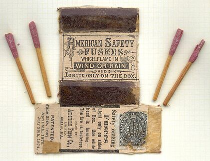 A pack that American Fusee used for selling safety matches, plus four of the actual matches. Note how the stamp was used.