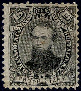 In 1872 or 1873 the name of the company was changed to D. Ransom, Son & Company. Dr. David Ransom died about that time, and his son and Sullivan Meredith took over. The new company used the stamps of the predecessor organization into 1875, when the National Bank Note Company took over the printing contract and probably insisted that companies update things like that. At any rate, stamps with the new corporate name were issued in 1876. These were produced until almost the end of the tax period, being last delivered on March 2, 1883.