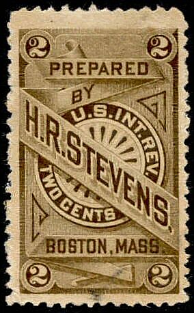 It is possible that Vegetine was sold in seventy-five-cent bottles until sometime in 1877. General issue three-cent stamps are known with Stevens cancels, as well as some two-cent stamps.