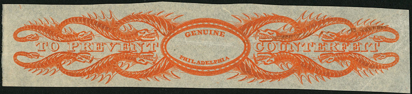 The William Swaim stamps were delivered around 1870, until January 29, 1883. They exist imperforate and die cut, and a few are known without signatures or with manuscript signatures. A total of 128,805 James and William Swaim stamps were issued on old paper, 139,477 on silk paper and 75,553 (presumably all William Swaim) on watermarked paper. The copy above is on watermarked paper.