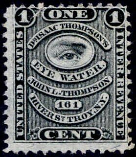 The Thompson proprietary stamp was first issued in January of 1863 and last delivered January 15, 1883. 1,207,500 were printed on old paper, 757,931 on silk paper and 937,692 on watermarked paper. The copy shown is on silk paper.