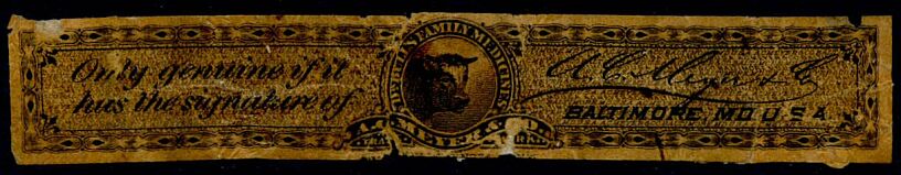 August Vogeler was born in Germany in 1819, and emigrated to the United States in his twenties. He built up a drug business in Baltimore and manufactured products such as Dr. August Koenig's Hamburger Tropfen. In 1873 he took over manufacture of Dr. Bull's Cough Syrup (not the Dr. Bull in Louisville.) His son was ambitious, and formed several partnerships for various purposes. This is reflected in the various names used for their private proprietary stamps.