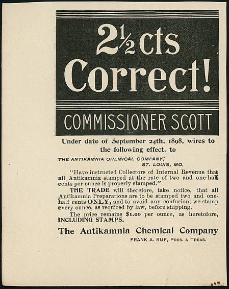 Antikamnia was still riding high in 1904, but was to virtually collapse with passage of the Pure Food and Drugs Bill in 1906.