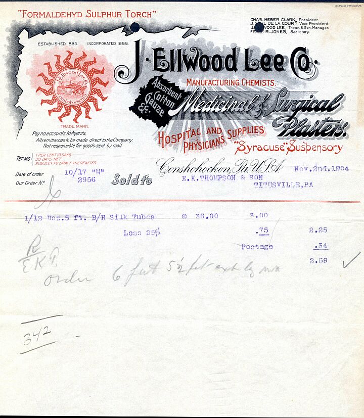 A Lee invoice from 1904, showing the "wheel of legs" logo.