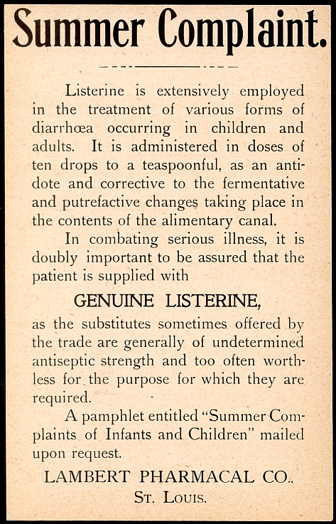 Another Listerine advertisement from the early twentieth century. Even at the time it was advertised as being good for the teeth, just as it is sold today.