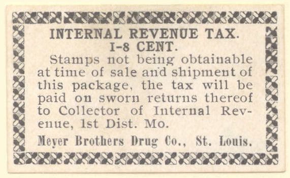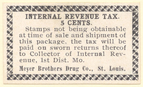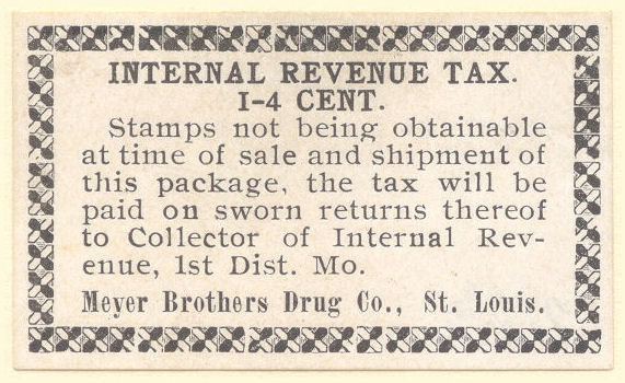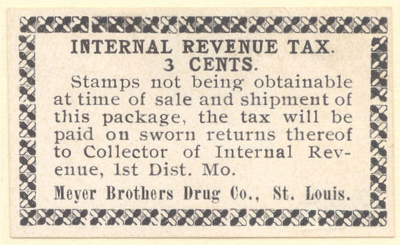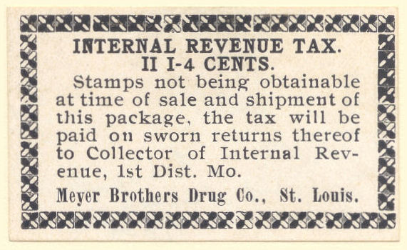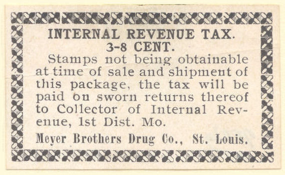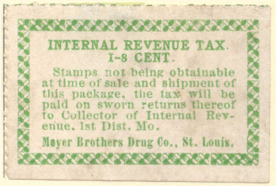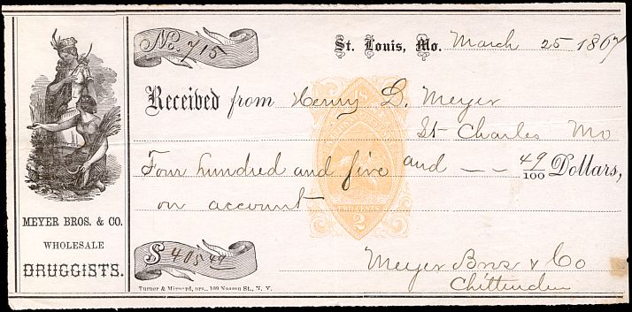 A Meyer Brothers receipt with a Type B imprinted revenue used when Meyer Brothers had been in Saint Louis for about five years.
