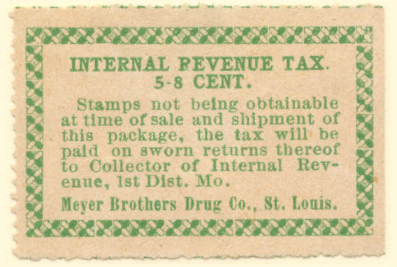 A Meyer Brothers cancel on a third issue proprietary stamp. This would have been used on a product, not a document.