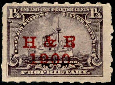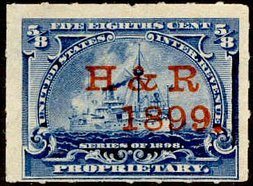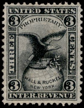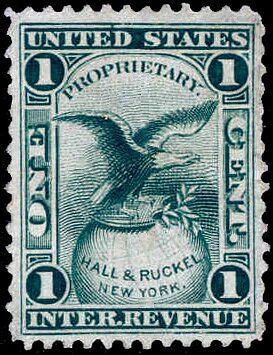 Hall & Ruckel survived well into the Twentieth Century. The company did not use private die stamps during the Spanish American War tax era. These "battleship" revenues show Hall & Ruckel cancels.