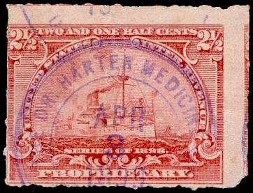 The Dr. Harter Medicine Company was operating in 1899, using general purpose revenue stamps for its products.