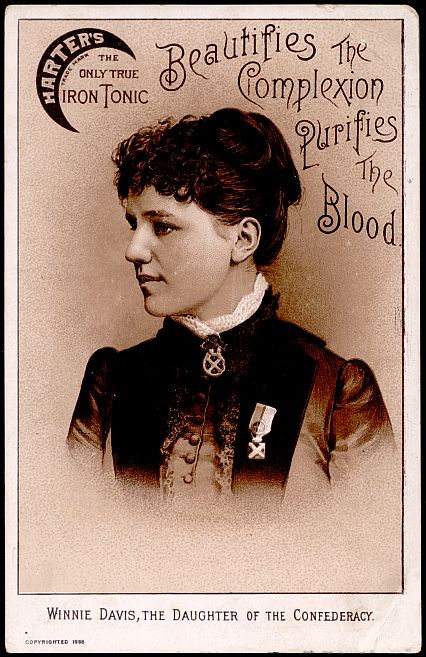 The back of the Winnie Davis advertising card.