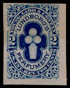 Young, Ladd & Coffin stamps were issued in four denominations, all of which can be found perforate and imperforate. The one-cent was issued from late 1877 through March 3, 1883. 831,034 were issued on silk, pink and watermarked papers. The ones above are both on pink paper.