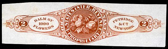 Fetridge & Company of New York had one printing of private die stamps, which were then issued from April, 1864 through October 22 of that year. 15,750 were issued, all on old paper. They were all die cut.
