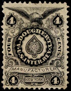 From August 1, 1864 to August 1, 1866 the tax on each pack of cards with retail price over 18 cents up to and including 25 cents was four cents.