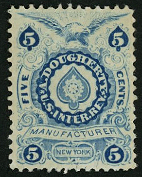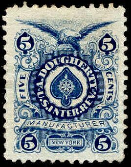 The small five-cent Andrew Dougherty stamp was issued from early 1878 to mid-February 1883. A total of 7,980,983 were issued on watermarked paper.