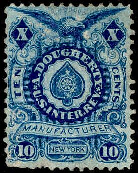 The ten-cent Andrew Dougherty stamp was issued from December of 1864 to May of 1866. A total of 442,700 were issued, all on old paper.