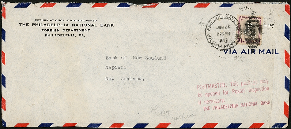 The airmail rate to New Zealand was fifty cents per half ounce from August 31, 1939 until November 1, 1946.
