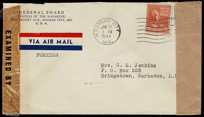 The airmail rate to the Bahamas, Barbados, Curacao, Dominica, the Dominican Republic and the British Virgin Islands was ten cents per half ounce for various periods before 1945. The Leeward Islands, Martinique, Trinadad and Tobago, and Grenada and the other Windward Islands was ten cents per half ounce from April 1, 1945 to November 1, 1946, when that amount became the uniform rate for most of North and Central America and the Caribbean, lasting through June 30, 1961.