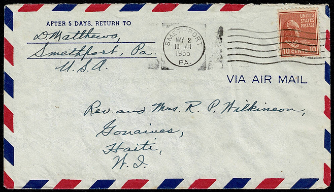 The airmail rate to various islands in the Caribbean was ten cents per half ounce from November 1, 1946 to July 1, 1961.