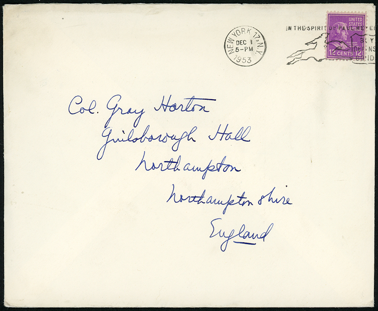 This letter, probably a Christmas greeting, was sent by surface mail to England in December of 1953.