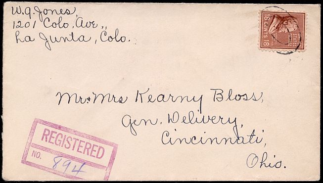 This registered cover was sent from La Junta, Colorado to Cincinnati, Ohio in 1939.