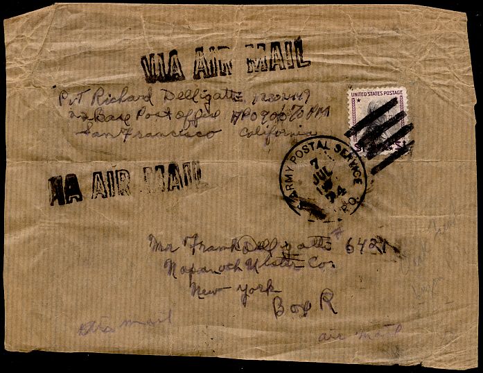 If we assume that the postage is paid correctly, the package would have had to have been mailed while the postage per ounce was five cents, between October 1, 1946 and January 1, 1949, and to have weighed between 19 and 20 ounces. This is likely, as the sender referred to APO 900, which was in use only up to 1950.