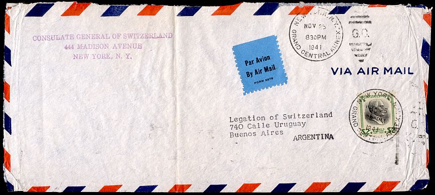 This cover, sent to Argentina in November of 1941, would have weighed between two and two-and-a-half ounces.