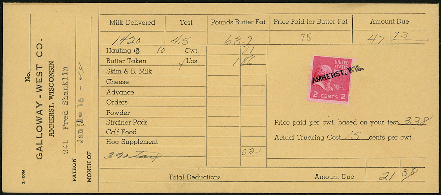 A very unusual drop rate cover sent outside the mails in 1944. This is a milk statement notice which was considered to be a letter requiring postage under the decision posted in Postal Bulletin No. 16870.