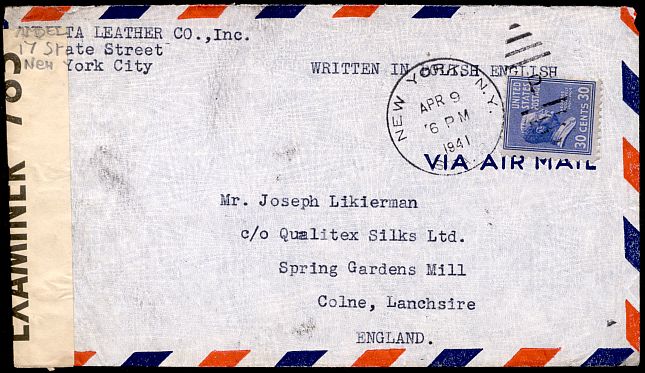 This cover was sent to England in April of 1941. The British censor was warned that it was "written in Polish English."