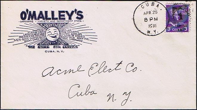 This letter was sent within Cuba, New York in 1961. (From the collection of Roland Austin.)