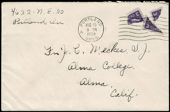 The same first class rate applied to surface mail sent to, from and within territories and possessions. This handpainted cover was sent from Oregon to Alaska, probably offering to do illustrations for the Alaska Sportsman.