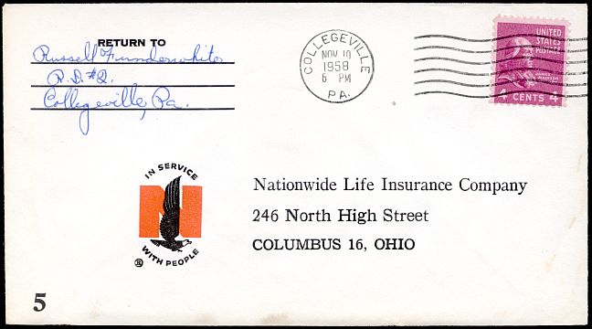A four-cent sheet stamp used to pay the first class domestic rate effective from August 1, 1958 until January 7, 1963.