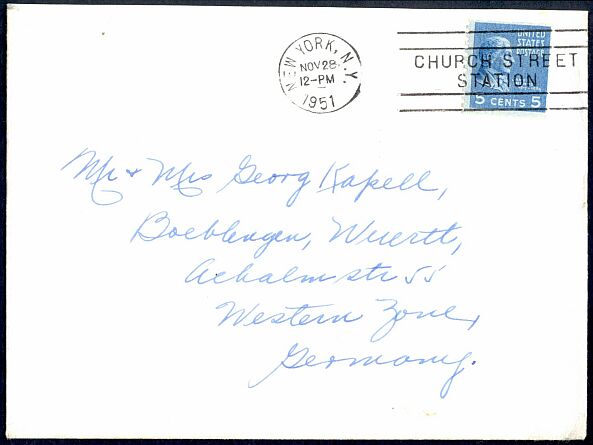 This five-cent coil stamp paid the international surface letter rate in effect from October 1, 1907 through October 31, 1953.