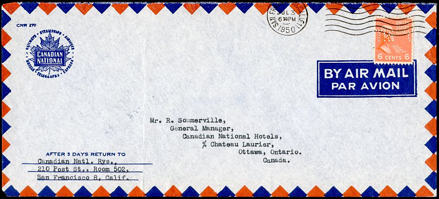 The air mail rate to Canada was six cents from January 1, 1949 until August 1, 1958.