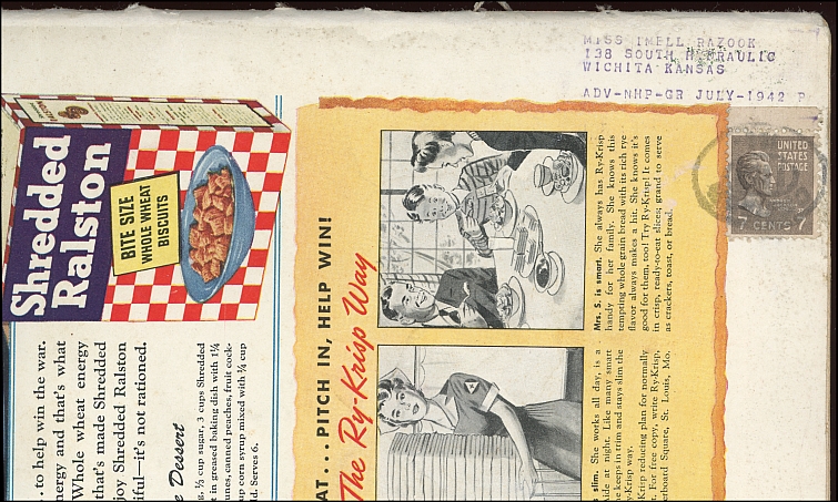 Magazine sent in 1943. Weight of 11.8 ounces, rounded to 12, results in six cents postage at one cent per two ounces.